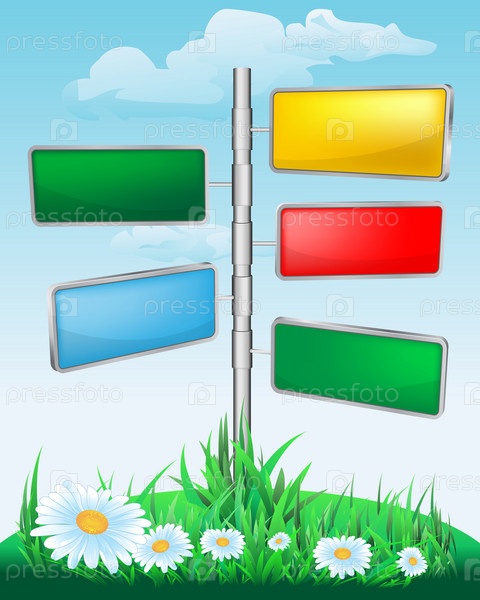 Указатель на лугу с цветами