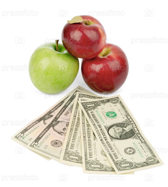 Свежие яблоки с деньгами