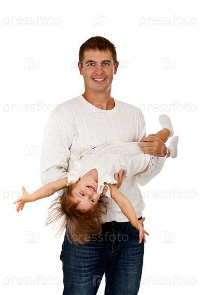 Маленькая дочка на руках у папы
