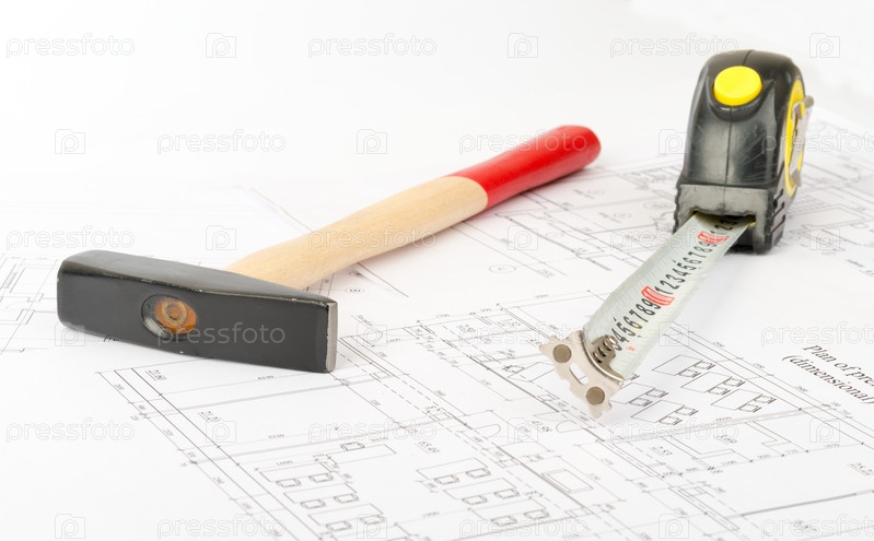 Молоток с рулеткой, вид сбоку