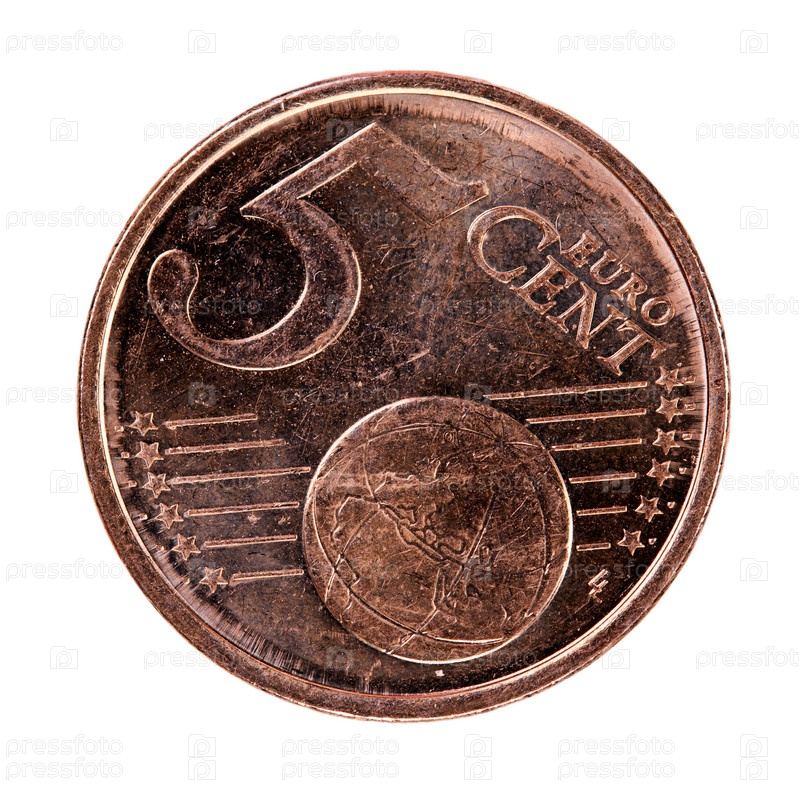 Монета достоинством в 5 евроцентов на белом фоне