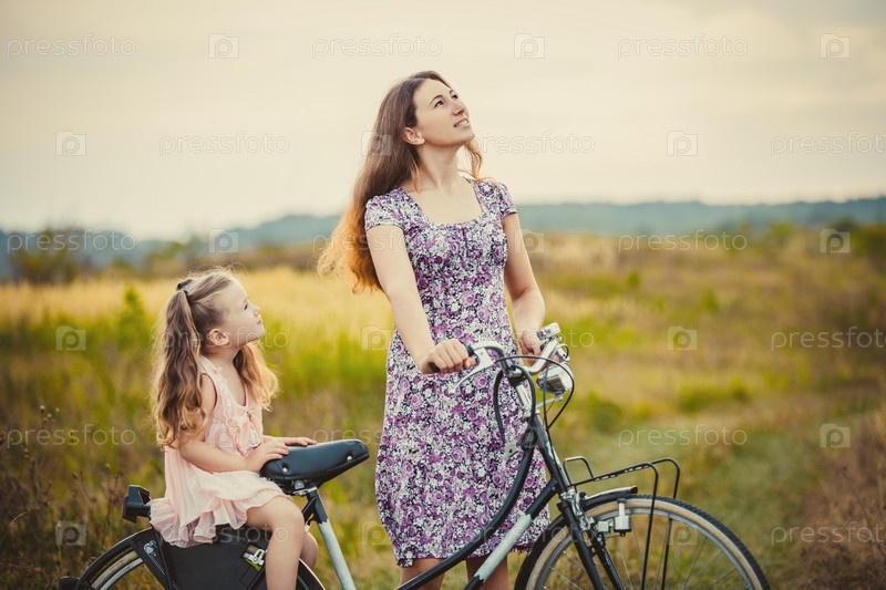 Мать с ребенком с велосипедом