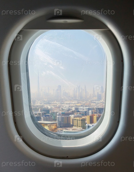 Небоскребы Дубая в иллюминаторе