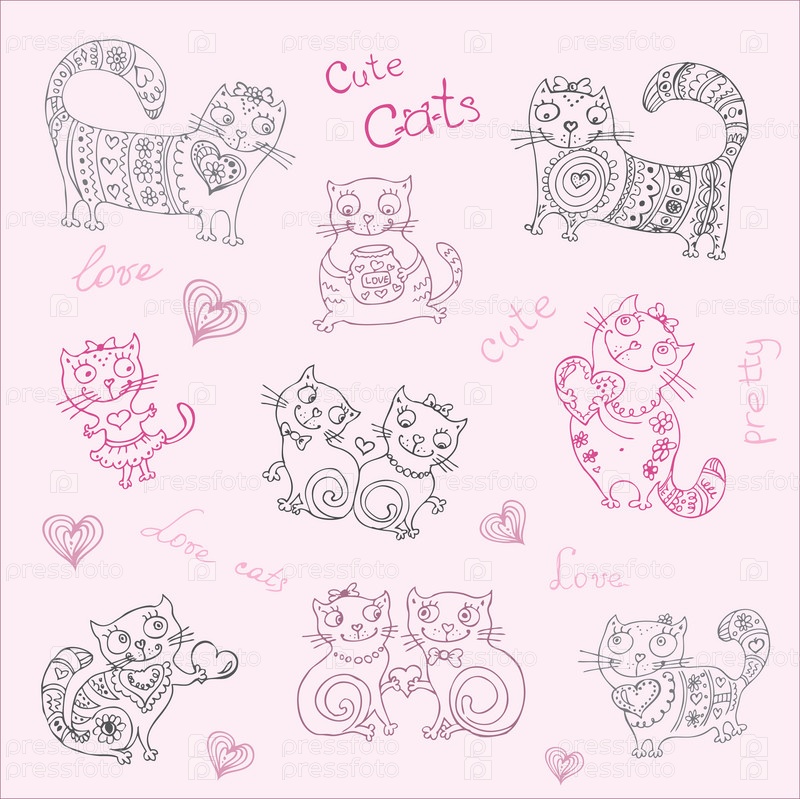 Бесшовный векторный фон с кошками