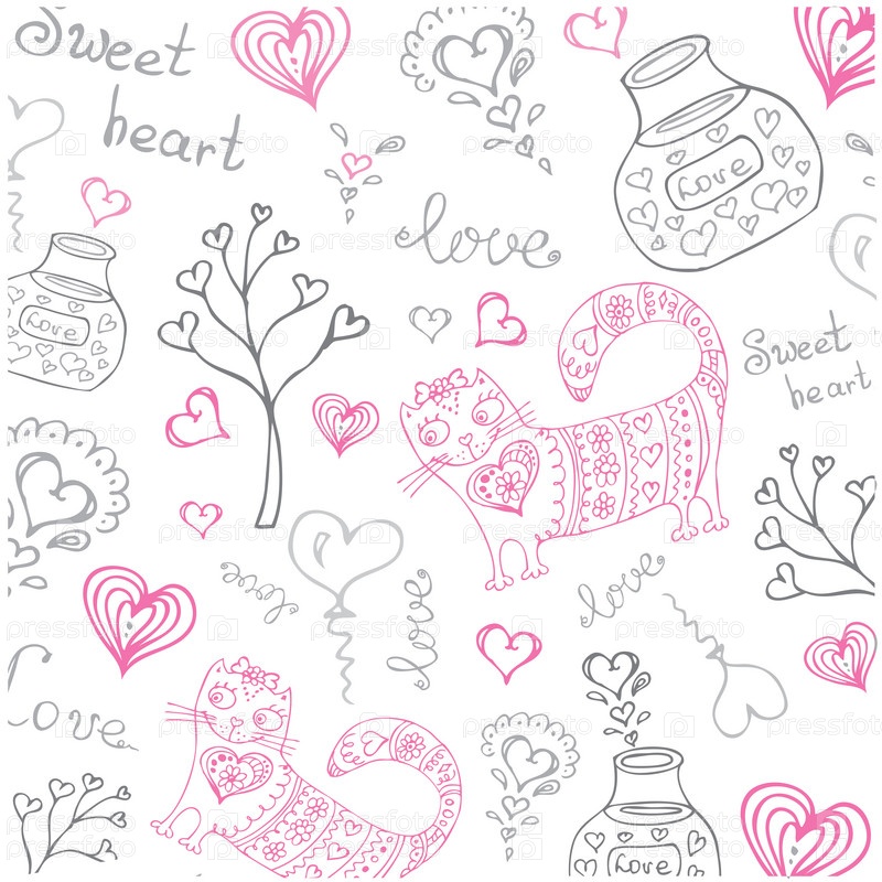 Бесшовный векторный фон с кошками