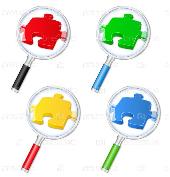 Увеличительные стекла с кусочками головоломки