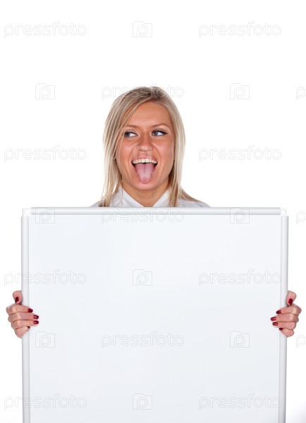 Довольная блондинка с белой доской