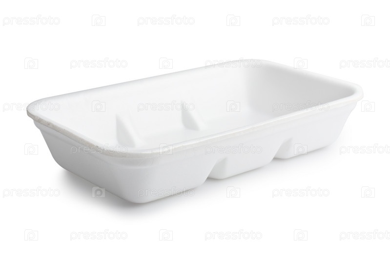 Пустой пластиковый лоток для пищевых продуктов на белом фоне