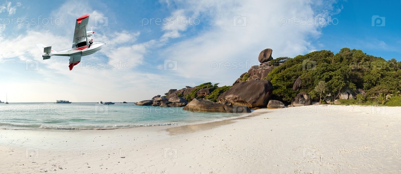 Самолет, пролетающий над берегом моря
