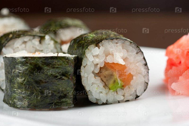 Хоккайдо маки, суши с лососем и авокадо