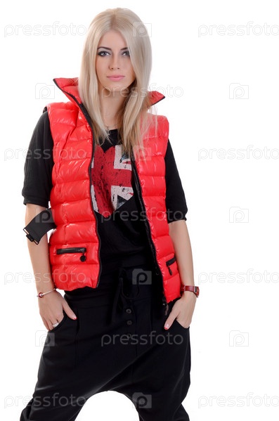 Модная блондинка в теплом жилете