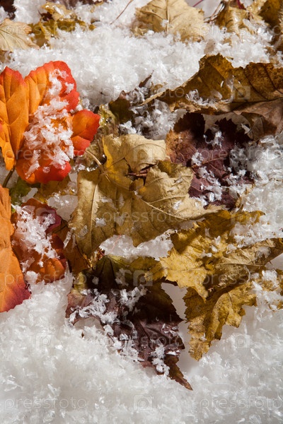 Осенние листья в снегу