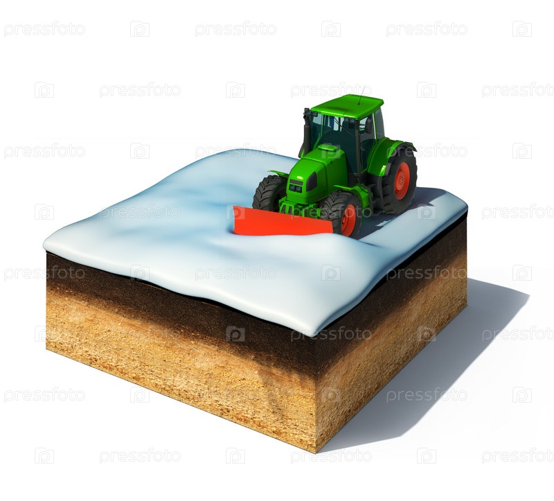 3D иллюстрация участка земли с тракторным снегоочистителем
