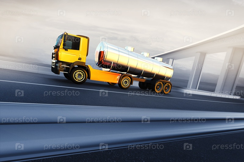 Грузовик на шоссе с нефтяной цистерной