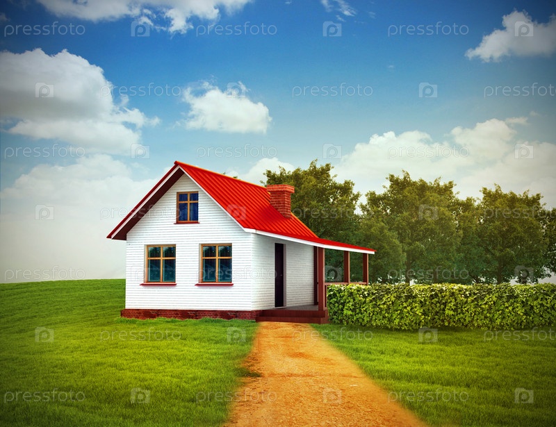 Дом на зеленой лужайке
