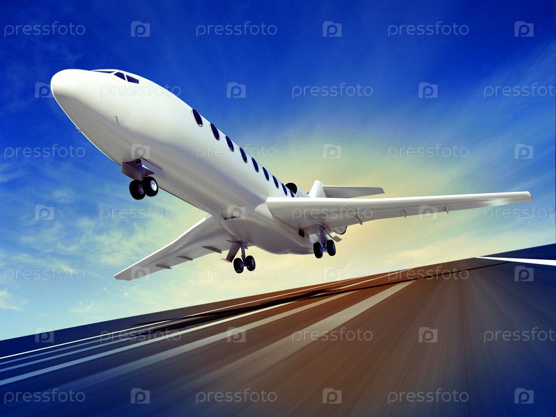 Пассажирский самолет взлететь над взлетно-посадочной полосы