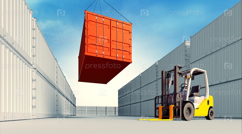 Промышленный порт с контейнерами и погрузчиков