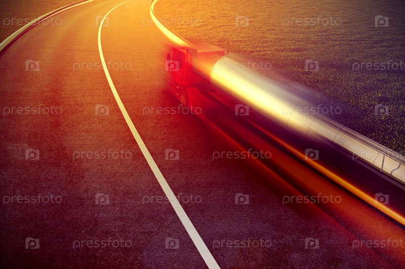 3D иллюстрации быстрого грузовика на асфальтированных дорогах смазки