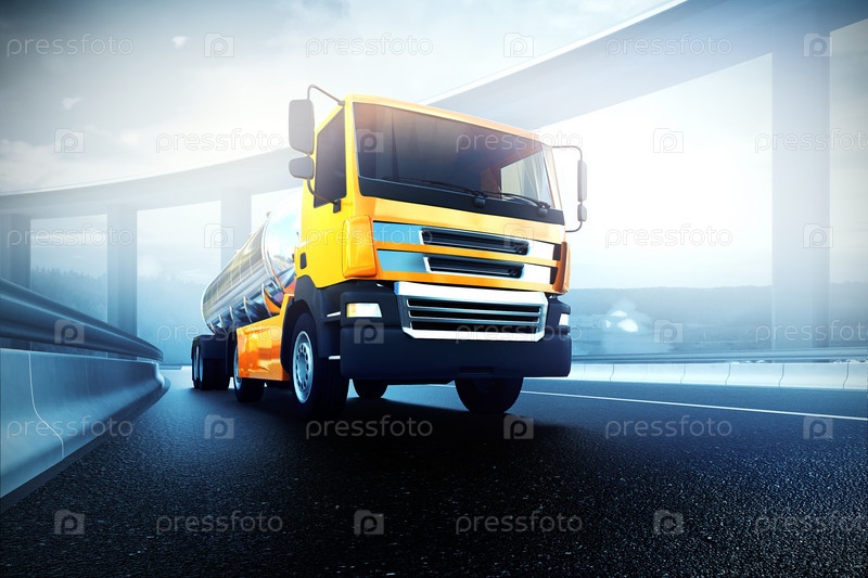 Грузовик с нефтяной цистерны на шоссе дорога асфальт