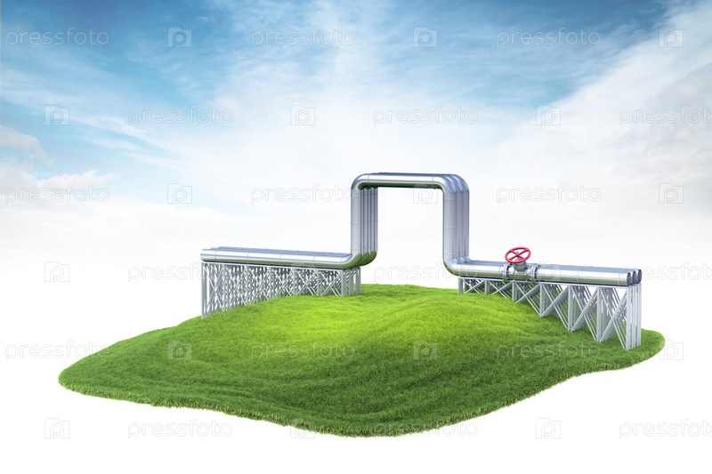 Остров с газ или нефть трубопровода, плавающие в воздухе на фоне неба