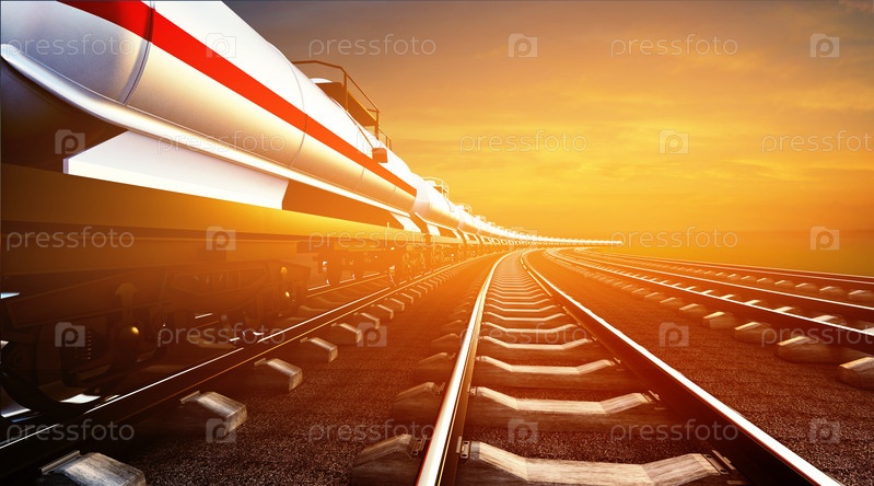 3D иллюстрация грузового поезда с нефтяными цистернами на фоне неба