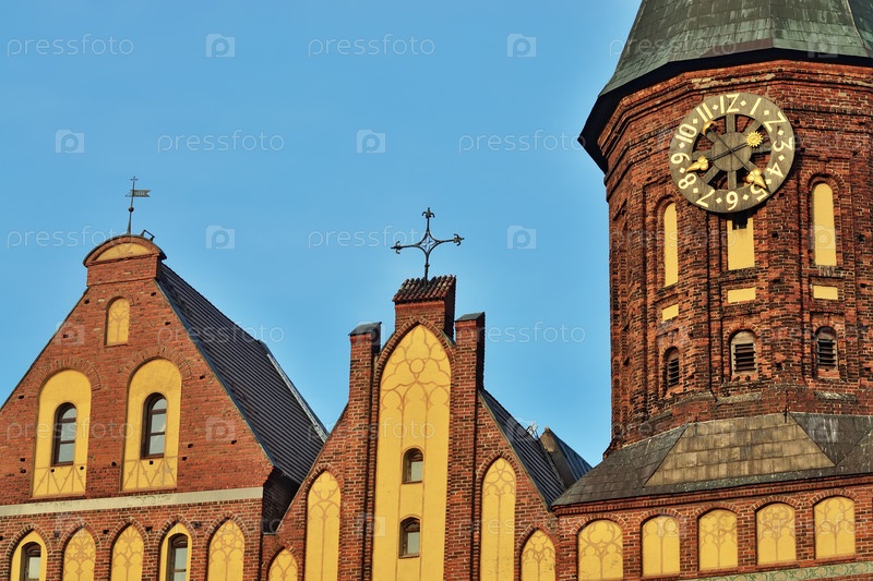 Башня Кафедрального собора Кенигсберга летним вечером. Символ города Калининград (до 1946 кода Кенигсберг), Россия