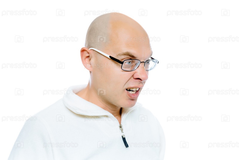 Лысый злой человек. Изолированные. Студия
