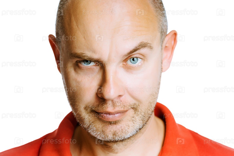 Человек, хмурый. Изолированные на белом фоне. Студия