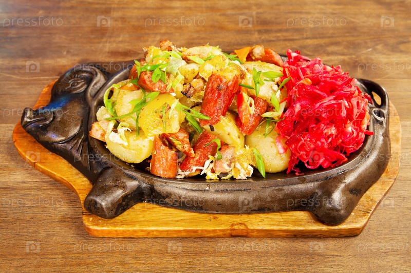 Колбаски с картофелем и овощами