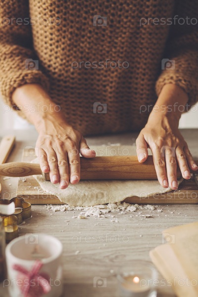 Женщина раскатывает тесто