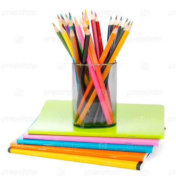 Цветные карандаши на тетрадках