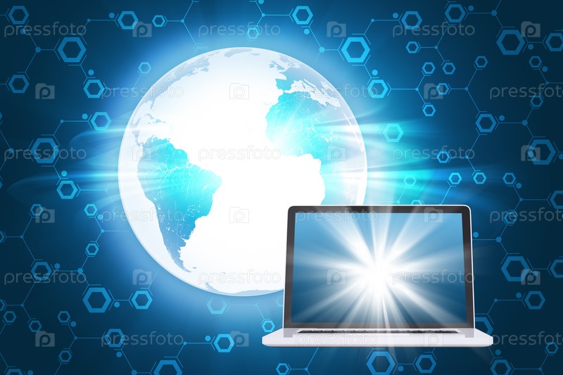 Ноутбук с глобус Земли, вид спереди