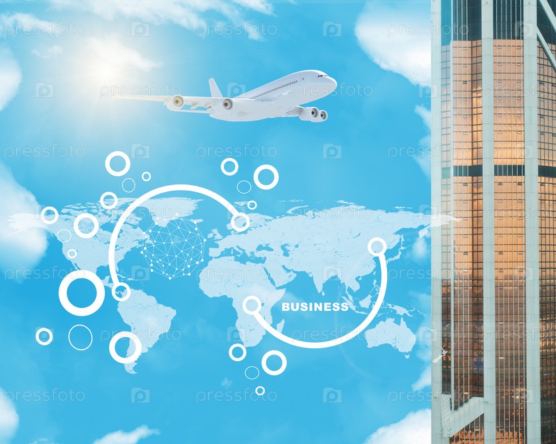 Здание с картой мира на фоне голубого неба
