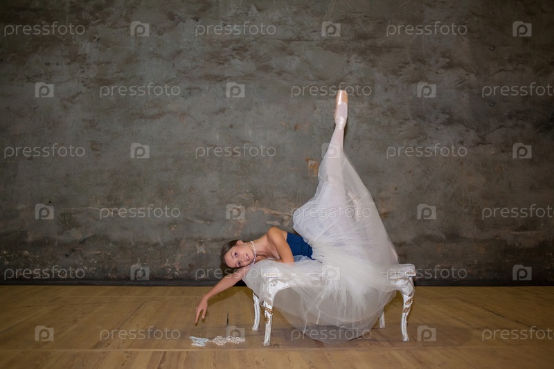 Красивые балерина позирует в длинные белые юбки