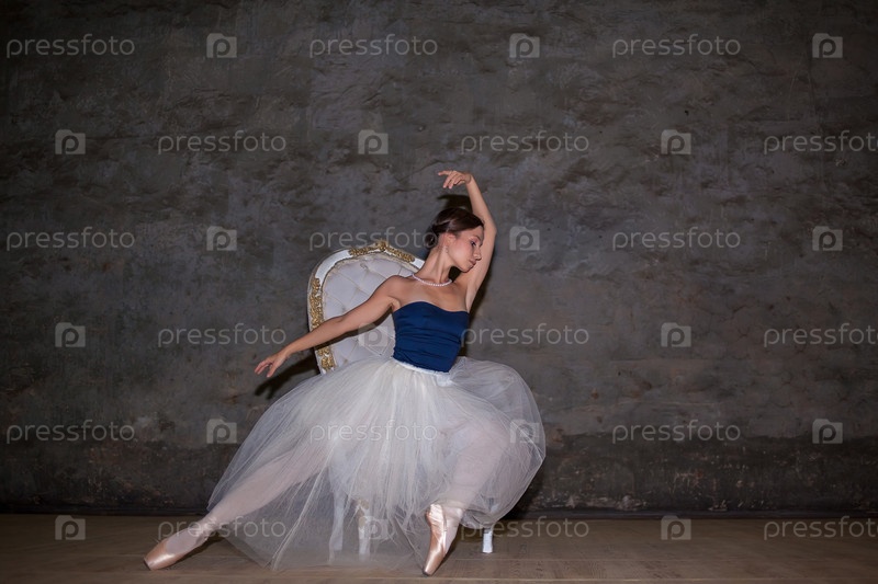 Красивые балерина позирует в длинные белые юбки
