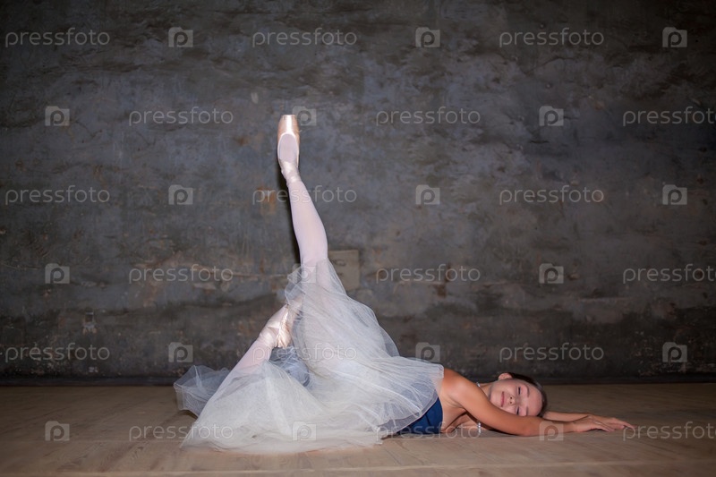 Красивые балерина позирует в длинные белые юбки