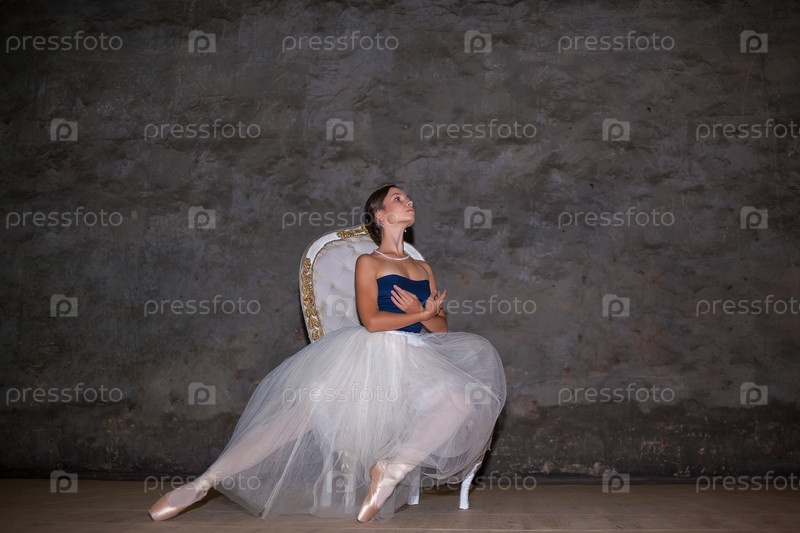 Красивые балерина позирует в длинные белые юбки
