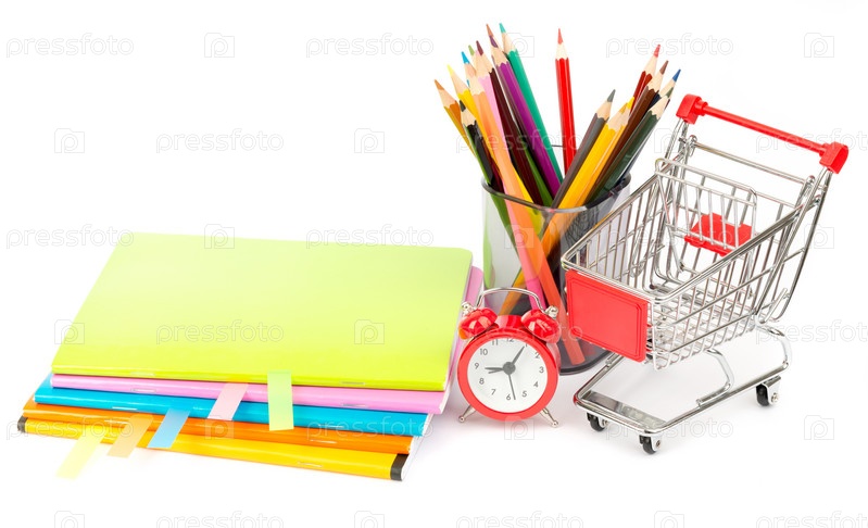 Карандаши, будильник и тетради