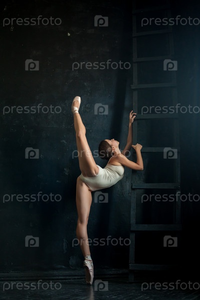 Красивые балерина позирует темном фоне