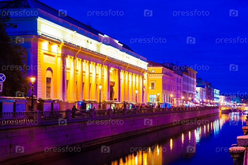 Красивая Ночная точка зрения канала Грибоедова возле церкви на разлитой
