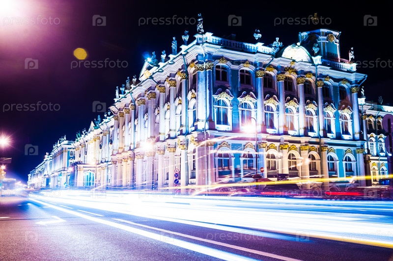Красивая ночь вид Зимнего дворца в Санкт-Петербурге