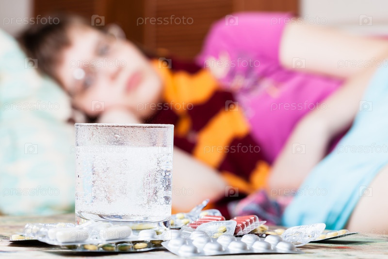 Стакан воды с таблетками