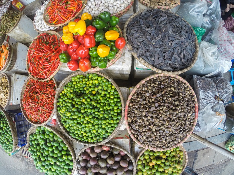 Фрукты и овощи на азиатском рынке