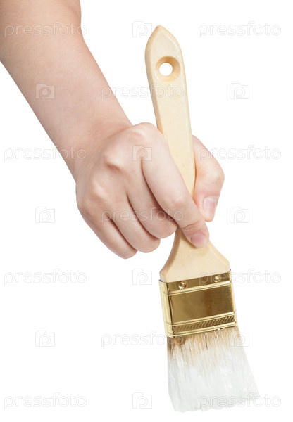 Прямой вид руки художника с белой кистью