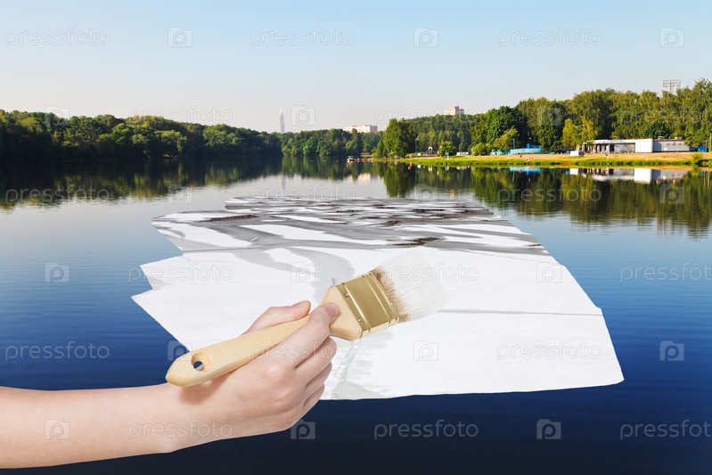 Кисть рисует Льдина в озере летом