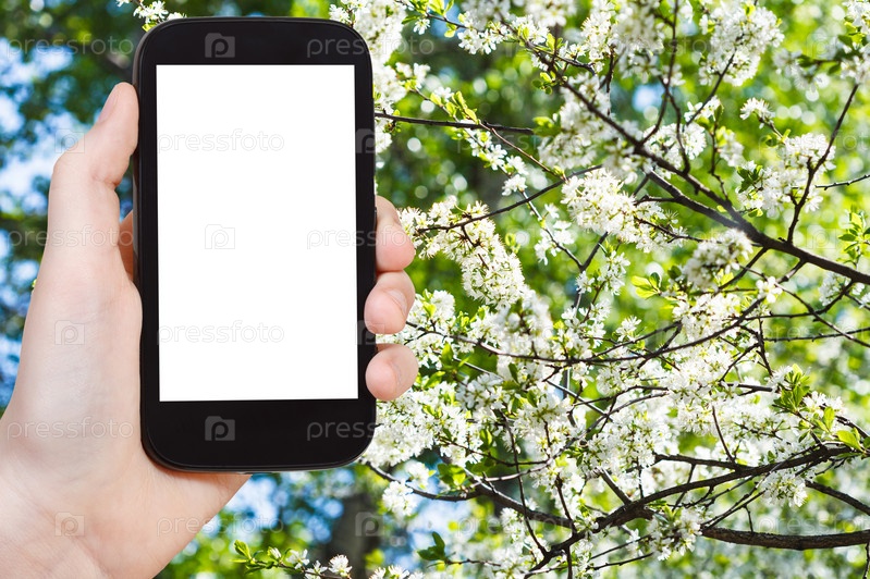 Смартфон и вишня цветет весна