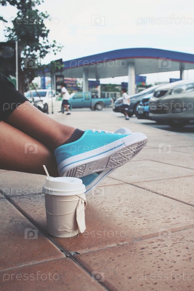 Кофе бумажный стаканчик с кроссовки