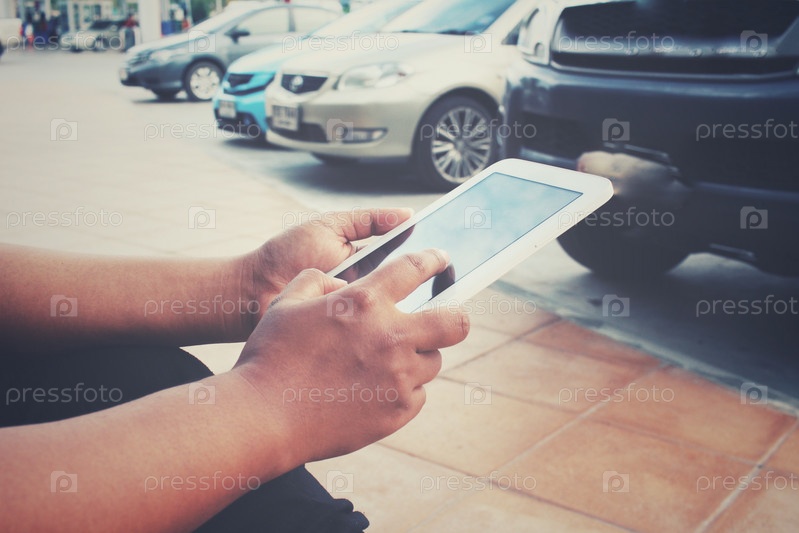 Женщина с помощью планшета