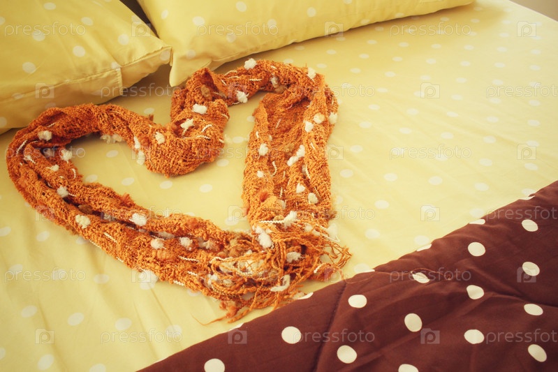 Сердце шарф на кровати подушки в отеле