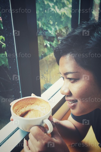 Женщина, пить кофе